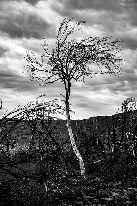 Big Bend National Park suffered a wildfire in May 2019, which devastated some historic structures in the Castolon area. As you head towards the Rio Grande and the landmark Santa Elena Canyon, you pass a grove of burnt trees. Photo taken March 2021.